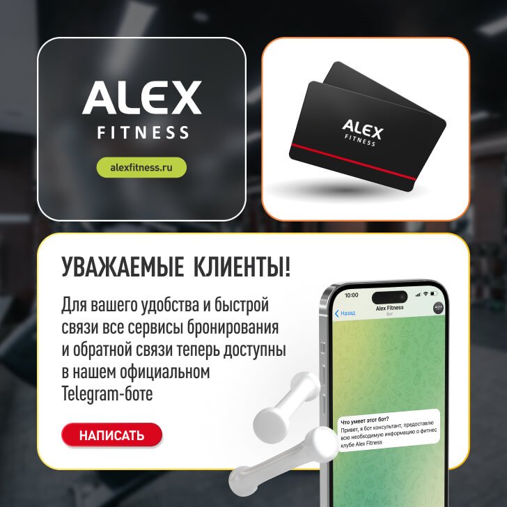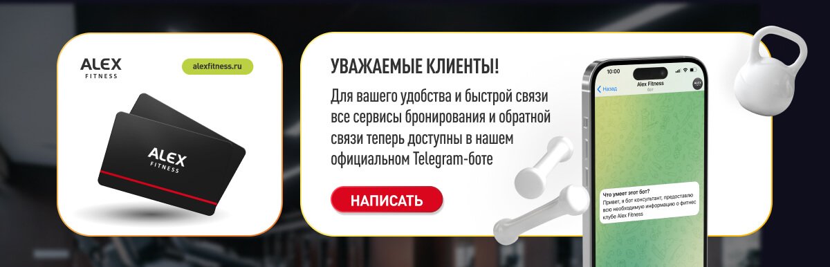 Индивидуальный подход и лучшие предложения по продвижению идей спорта и здорового образа жизни в клубах ALEX FITNESS.
